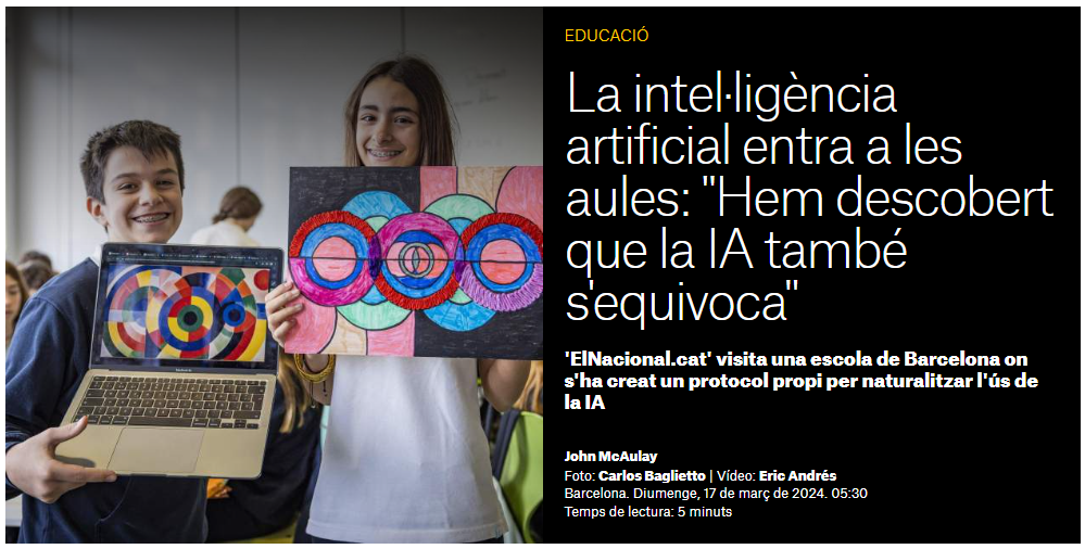 La intel·ligència artificial entra a les aules: “Hem descobert que la IA també s’equivoca” Autor de l'entrada:Col·legi Montserrat Entrada publicada:17 de març de 2024 Llegir l'article sencer Podeu seguir el dia a dia de l’escola a les nostres xarxes socials! Twitter Instagram Facebook Youtube